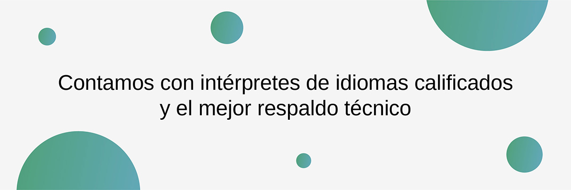 - Ofrecemos interpretación simultánea en inglés, español y portugués. Consúltenos disponibilidad de intérpretes en otros idiomas.