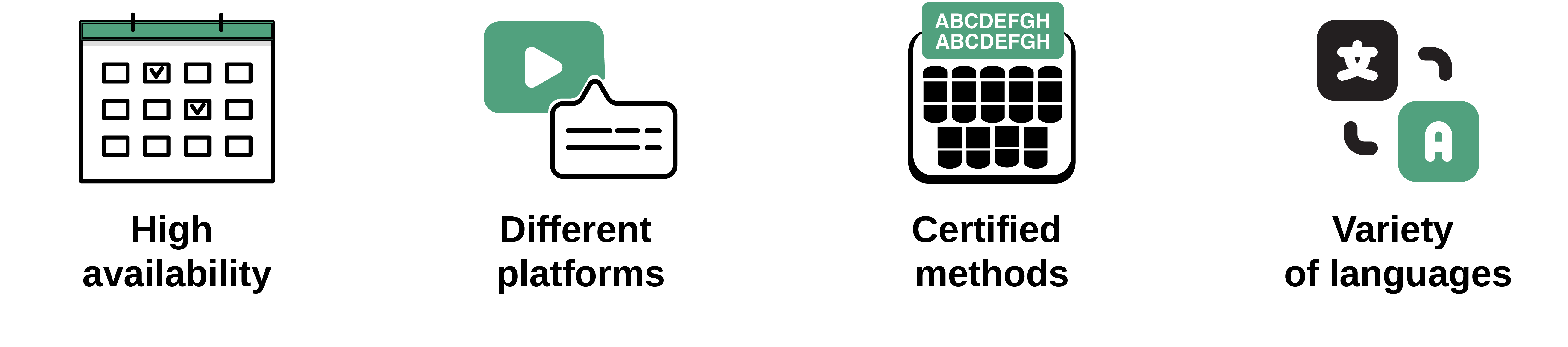 - Hybrid: Attendees who are physically present at the venue can access the text through screens in the venue; for those who are virtually present, the subtitles can be incorporated into the platform chosen by the client.